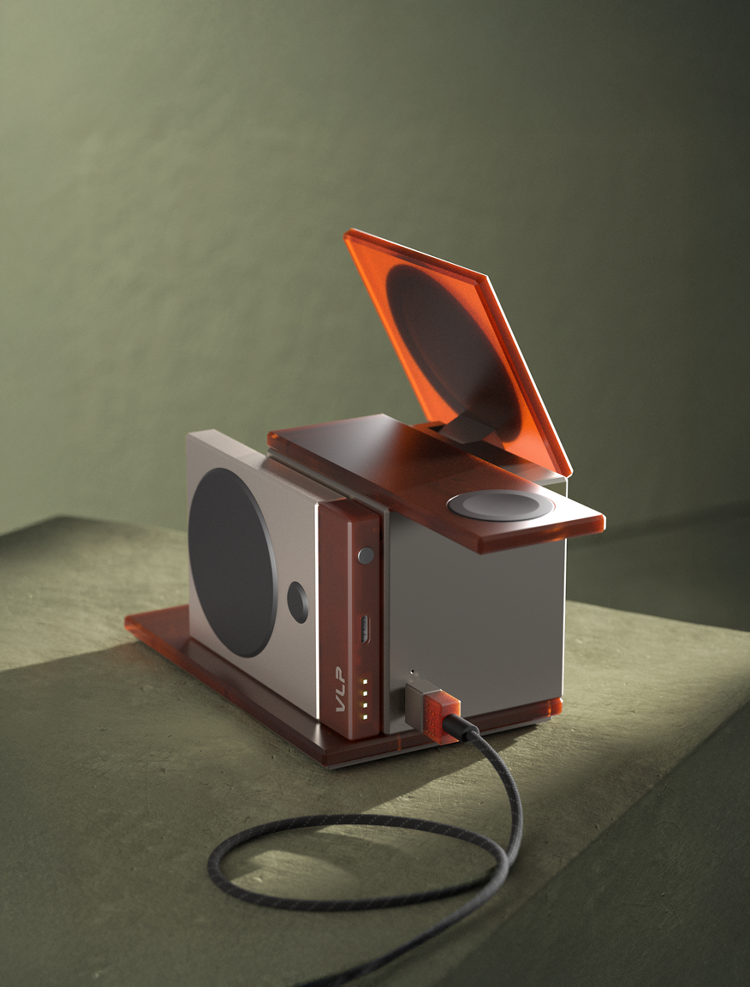 - Станция стандарта Qi2.2 в алюминиевом корпусе с прозрачными элементами из поликарбоната — продолжение архитектурной эстетики коллекции NEO, созданной в коллаборации VLP со Студией Артемия Лебедева.