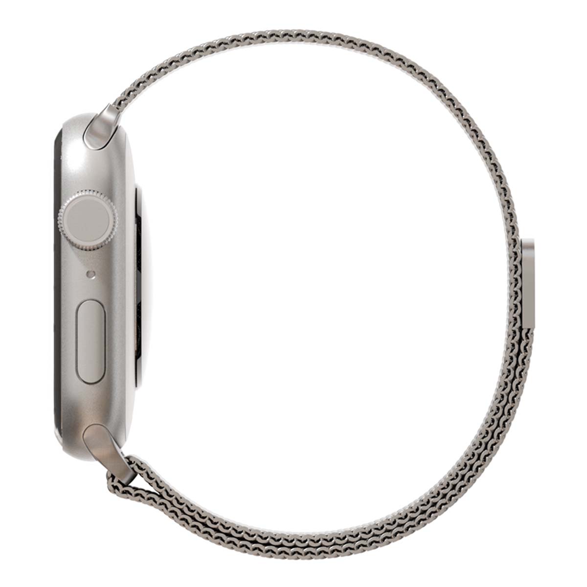 Стильный гладкий ремешок из нержавеющей стали с типом плетения «миланская петля» станет отличным дополнением Вашего образа. Он обладает высокими прочностными характеристиками. Благодаря многоступенчатой технологии обработки металла, ремешок не царапается и не цепляется за одежду. Сетчатое плетение сохраняет отличные дышащие свойства. Длина регулируется одним движением и идеально подстраивается под размер запястья. Ремешок легко крепится к корпусу Apple Watch с помощью специальных коннекторов. Застёжка с усиленным магнитом надежно фиксирует ремешок на Вашей руке - он не расстегнется и не упадет во время носки.