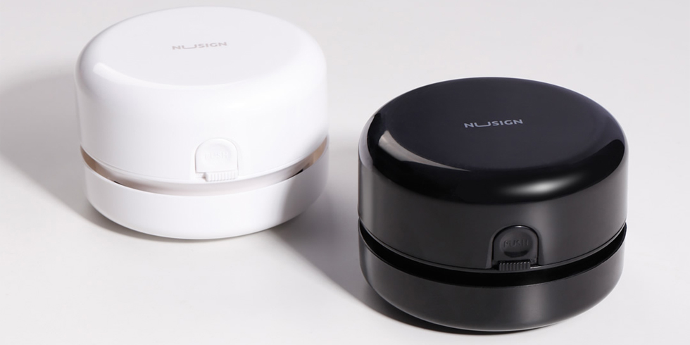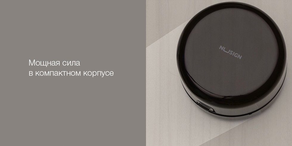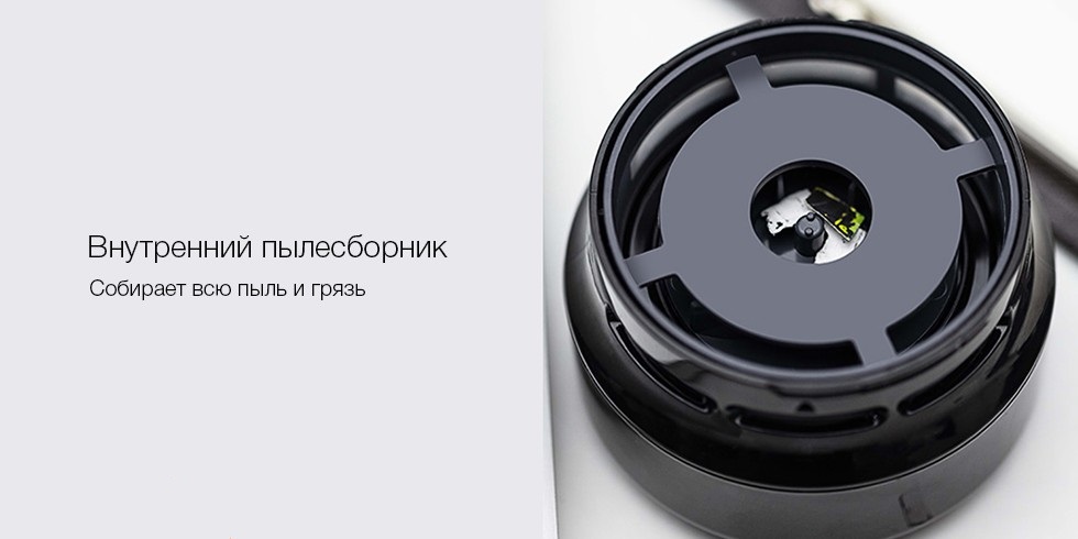Мощный карманный пылесос заключен в небольшой корпус круглой формы. Его можно взять с собой в командировку или почистить с его помощью машину. Все элементы настолько продуманы, что девайс выглядит как модный аксессуар.