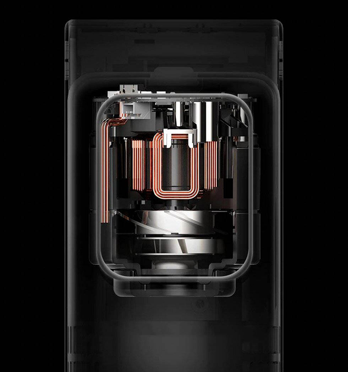Бесщеточный двигатель третьего поколения Space 3.0 с частотой вращения 100000 об/мин обеспечивает силу всасывания до 22000 Па - на 16% эффективнее при той же скорости вращения двигателя.
