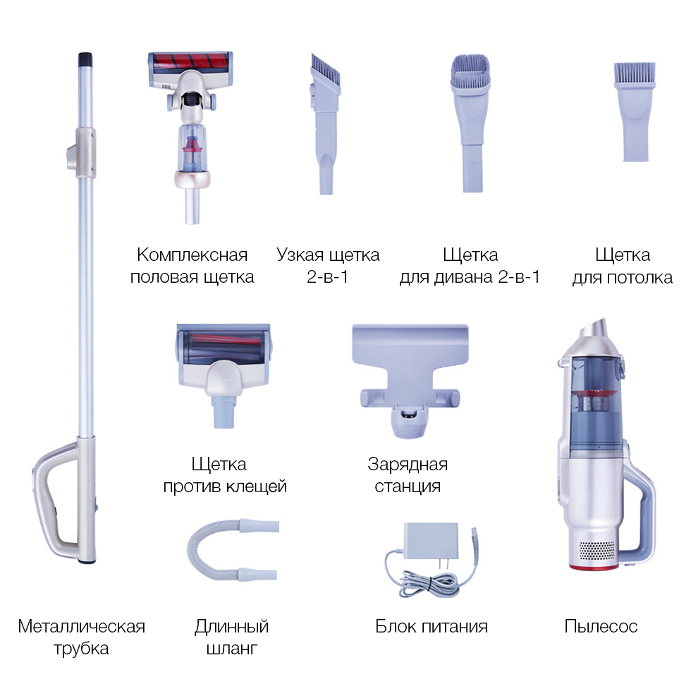 После полной очистки пола от пыли достаточно нажать всего одну кнопку, чтобы снять двигатель и подсоединить к нему другие насадки, сделав из полового пылесоса мобильный. С разными насадками, шлангом или съёмной металлической трубкой можно собирать варианты под решение разных задач, чтобы убрать пыль из-под кровати, из узких щелей, из кондиционера и других мест.