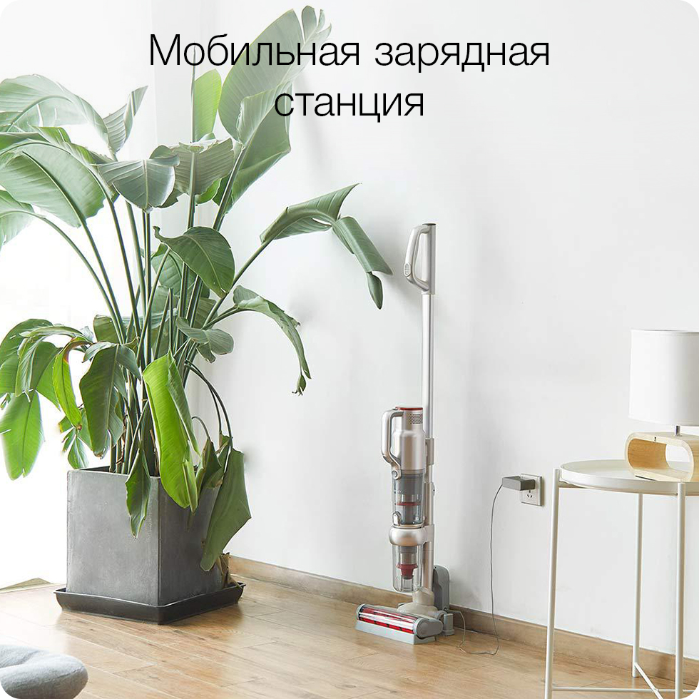 Зарядную станцию пылесоса можно разместить в любом удобном месте возле розетки. После уборки достаточно поставить на нее пылесос, чтобы он начал восполнять запасы энергии, при этом для нее даже не надо сверлить стены и портить ремонт.